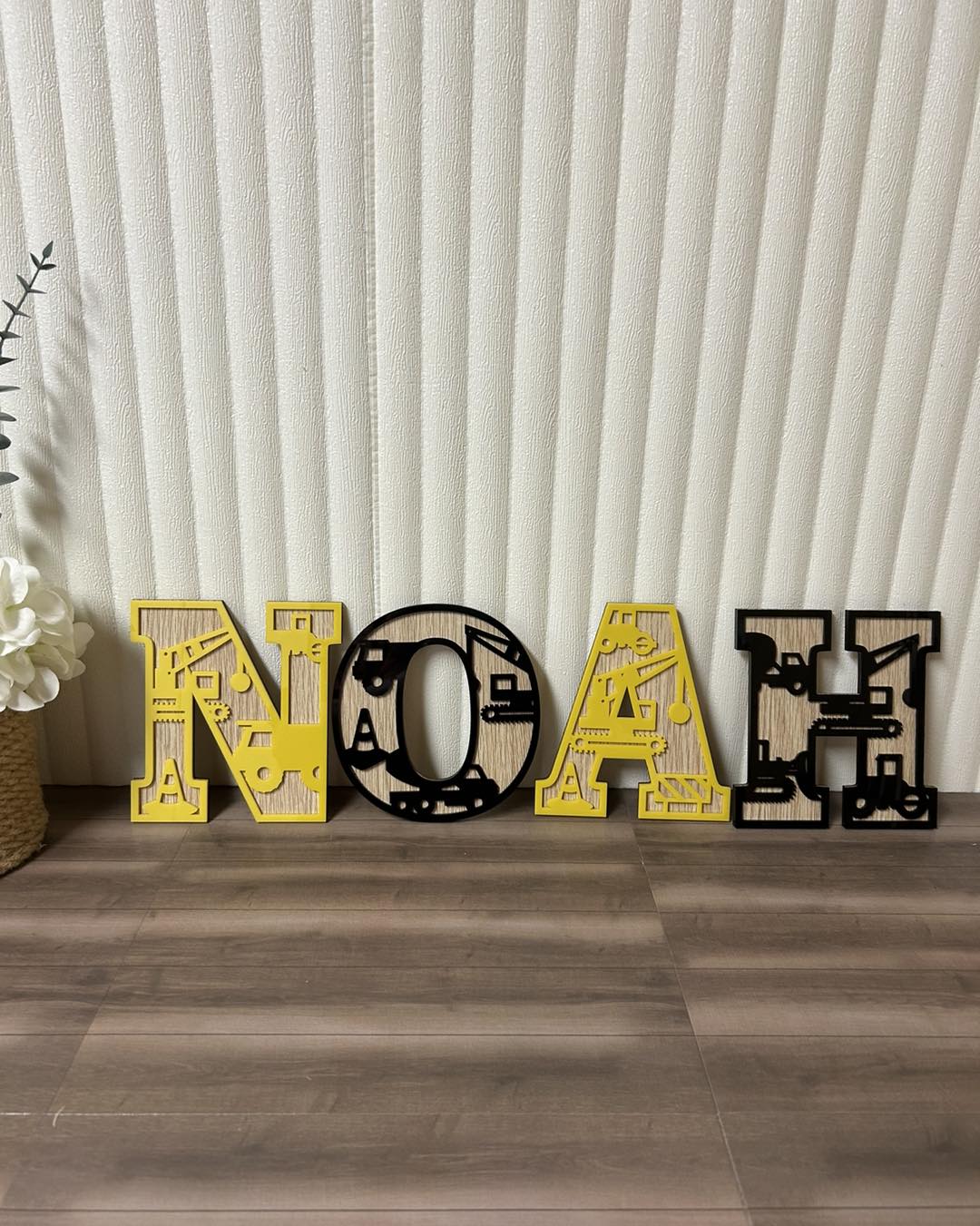These unique wall letters feature a construction theme, with a dual layered timber base and acrylic layer. Perfect for a nursery or bedroom, they add a fun and playful touch to any space. Get your little builder's name spelled out today!