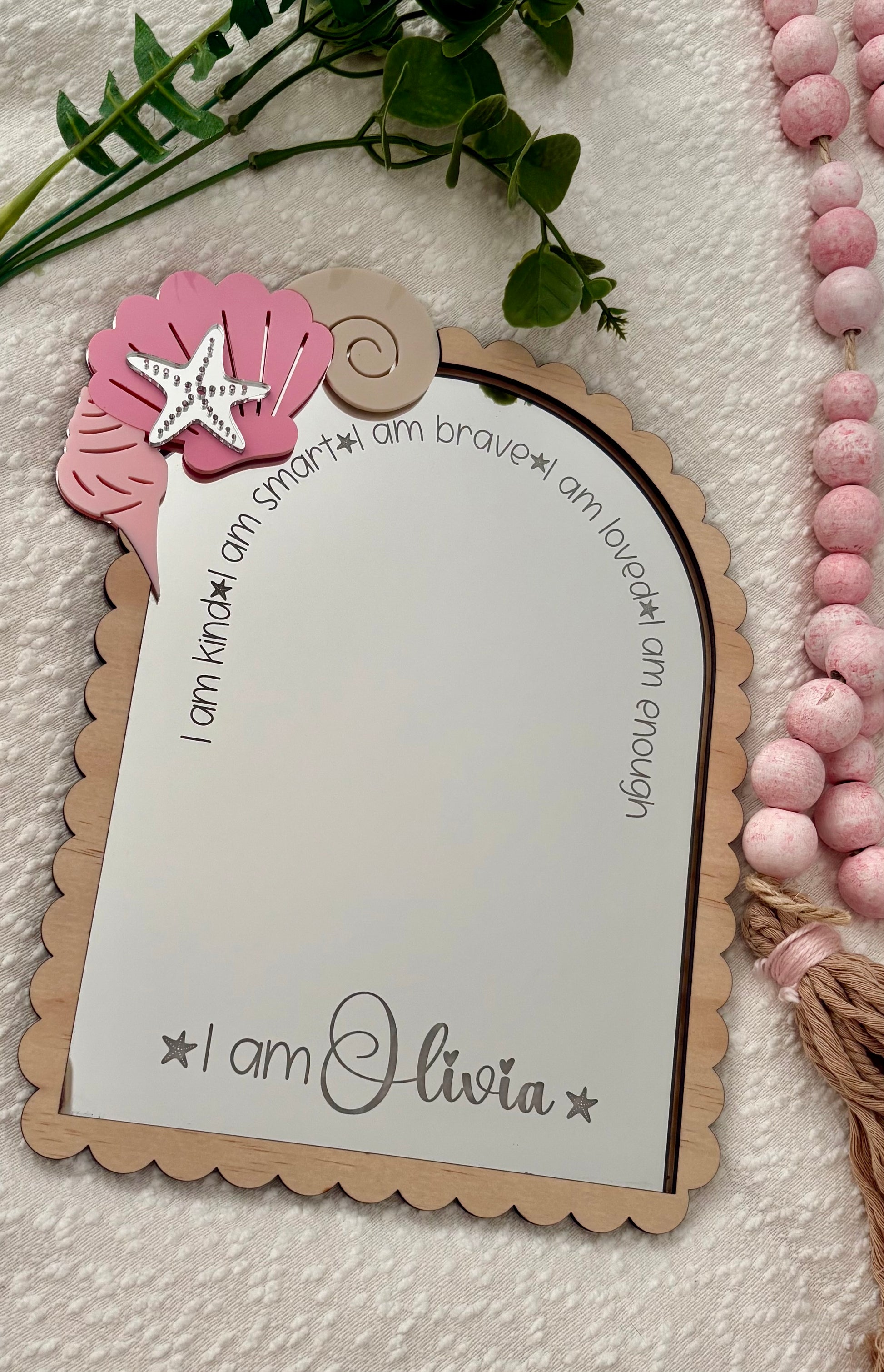 Personalised Affirmation Mirror – Seashell Themed