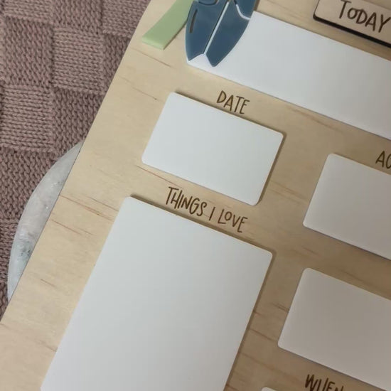Enhance your child's school experience with our First / Last Day of School board. This personalized photo prop captures each yearly milestone beautifully. Use a whiteboard marker to add their details, snap a perfect picture, and then easily wipe it away to reuse for future use!